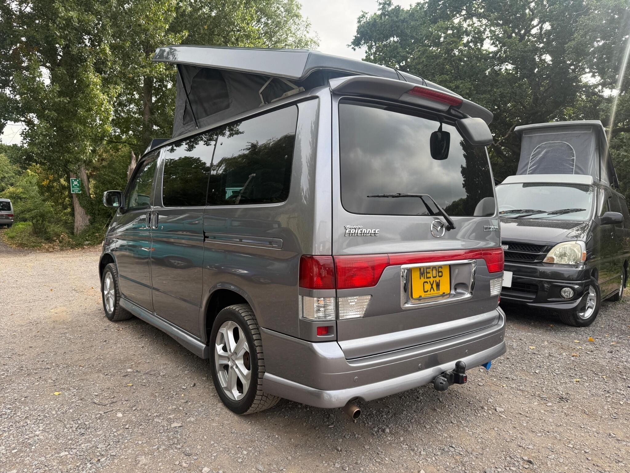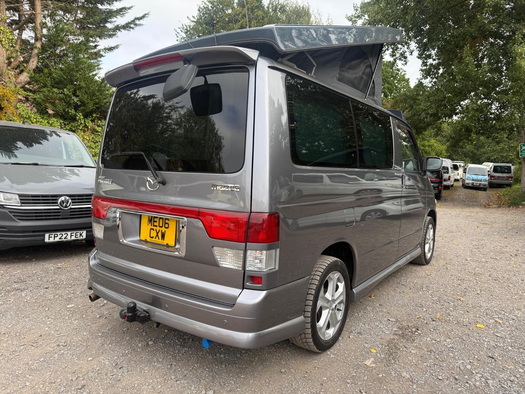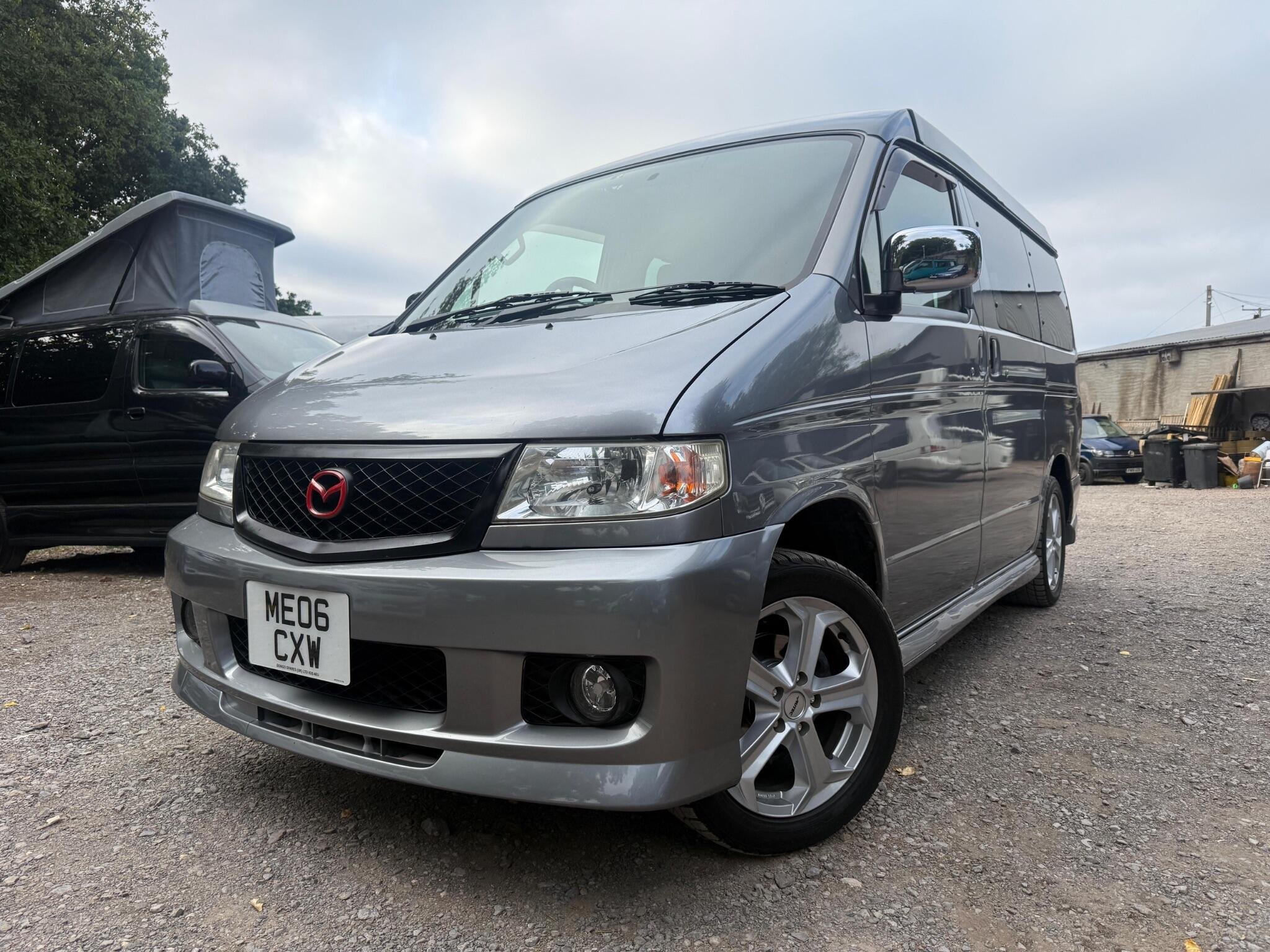 ULEZ & CAZ COMPLIANT.2006 MAZDA BONGO POP TOP 4 BERTH FULL NEW SIDE CAMPER CONVERSION INCLUDES: COOKER, SINK WITH RUNNING WATER, TOP LOADER FRIDGE, FRESH & WASTE WATER BOTTLES, MAINS HOOKUP, UK SOCKETS, STORAGE, TABLE power windows, Power Assisted Steering, Air bag ABS, Blinds, ROCK N ROLL BED goes flat to make into bed 2 adult can sleep, 2 sleep up, 2 LITRE Petrol engine automatic transmission benefits from over drive, 2 WHEEL DRIVE, CLEAN BONGO IN & OUT,Long MOT,UNDERSEAL,SERVICE. Low miles Miles 88,486 only, 3 MONTHS ENGINE & GEARBOX WARRANTY FULL AFTER SALE SERVICES OPTIONAL EXTRAS AVAILABLE NATIONWIDE DELIVERY VIEWINGS BY APPOINTMENT ONLY..