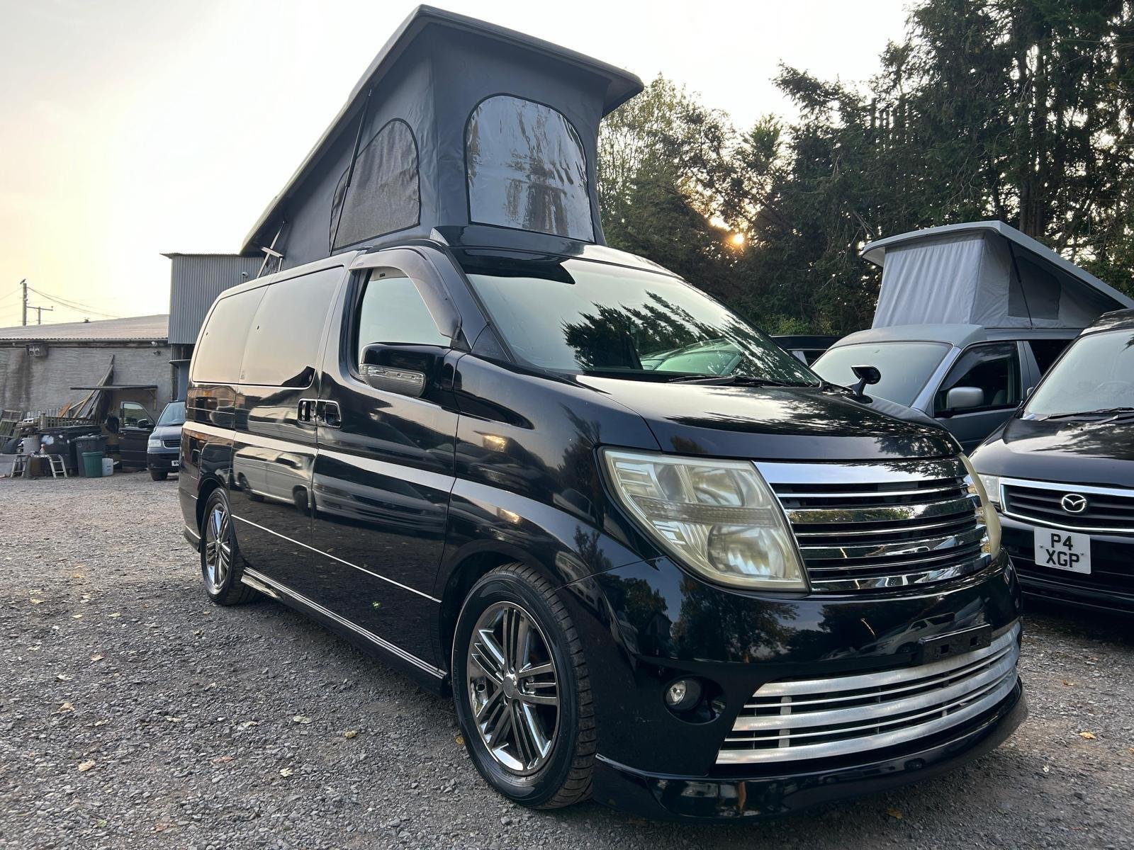 2005 NISSAN ELGRAND 4 BERTH POP TOP LPG. GAS IS CHEAPER THAN PETROL OR DIESEL.It is dual fuel(Petrol or Gas).CAMPER CONVERSION FITTED BY US.LOW WARRANTED MILES 60,000 ONLY WITH PAPERWORK TO VERIFY MILEAGE """ AUTOMATIC, 2.5 V6 Petrol Engine. POWER STEERING, ELECTRIC WINDOWS, , ELECTRIC MIRRORS, ABS, 5 SEATER WITH SEAT BELTS( 2 ON THE FRONT & 3 ON THE BACK).ROCK N ROLL BED GOES FLAT TO MAKE INTO DOUBLE BED 2 can sleep,COOKER WITH 2 HOBS, SINK WITH RUNNING WATER, FRESH WATER CAN,WASTE WATER CAN,PROPER COMPRESSOR FRIDGE,LEISURE BATTERY, MAINS HOOKUP, 240V SOCKETS,USB SOCKETS,LONG MOT, UNDERSEAL, SERVICE, GOOD CONDITION IN & OUT,FRONT PASSENGER SEAT SWIVEL, DRIVES SPOT ON WITH 3 MONTHS ENGINE & GEARBOX WARRANTY. FULL AFTER SALE SERVICES Optional Extras,NATIONWIDE DELIVERY POSSIBLE.PLEASE NOTE FUNDS MUST BE CLEAR BEFORE DELIVERY. VIEWINGS BY APPOINTMENT ONLY.