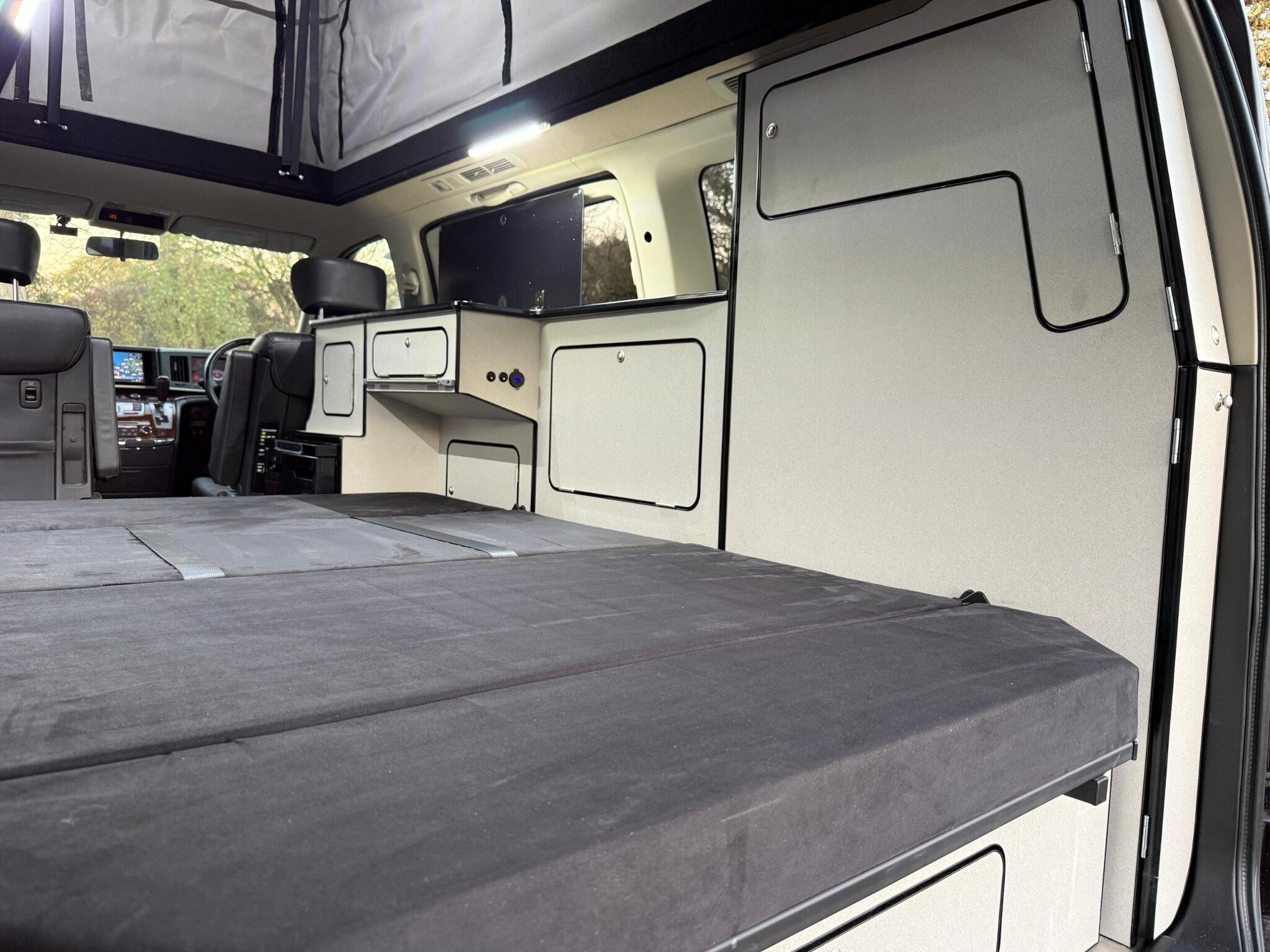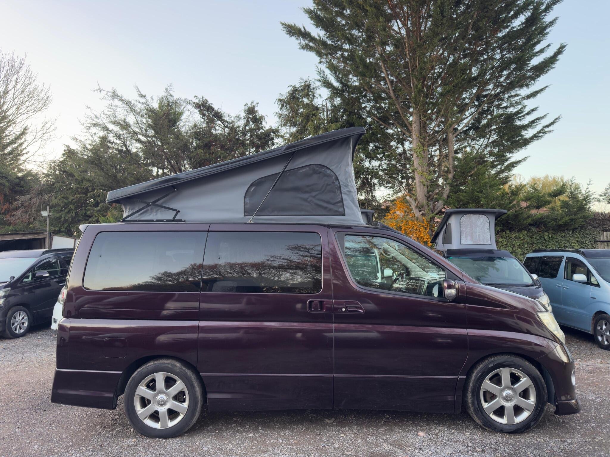 2010 Nissan Elgrand 4 BERTH POP TOP.BRAND NEW FULL HIGH QUALITY SLIMLINE SIDE CONVERSION FITTED BY US.COMES WITH 12 MONTHS WARRANTY. """ LOW WARRANTED MILES ONLY 69,104 WITH PAPERWORK TO VERIFY MILEAGE """ AUTOMATIC, 2495 cc Petrol, POWER STEERING, ELECTRIC WINDOWS, , ELECTRIC MIRRORS, ABS, 5 SEATER WITH SEAT BELTS, 2 SEATER ON THE FRONT & 3 SEATER ON THE BACK(ROCK N ROLL BED) WITH SEAT belts AIR CONDITIONING AC, Snow Mode, Selectable 4wd,Electric Sliding Door, REVERSING CAMERA, SIDE VIEW CAMERA, BRAND NEW POP TOP ROOF, COOKER WITH 2 HOBS, SINK WITH RUNNING WATER, FRESH WATER TANK, WASTE WATER TANK, PROPER COMPRESSOR FRIDGE(NOT CHEAP FRIDGE), LEISURE BATTERY, MAINS HOOKUP, 240V SOCKETS, 2x12V USB PORTS, 46 Inch wide ROCK N ROLL BED GOES FLAT TO MAKE INTO LARGE DOUBLE BED 2 PEOPLE SLEEP, 2 CAN SLEEP UP IN THE ROOF, LONG MOT, UNDERSEAL, SERVICE, VALETED,FULL UK REGISTERED, GREAT CONDITION IN & OUT, DRIVES SPOT ON WITH 3 MONTHS ENGINE & GEARBOX WARRANTY. FULL AFTER SALE SERVICES Optional Extras,NATIONWIDE DELIVERY POSSIBLE.PLEASE NOTE FUNDS MUST BE CLEAR BEFORE DELIVERY. VIEWINGS BY APPOINTMENT ONLY... Following Optional Extras available at extra cost: SOLAR PANEL BIKE RACK ROOF BARS TOWBAR SWIVEL SEAT AWNING MICROWAVE LPG CONVERSION and much more…